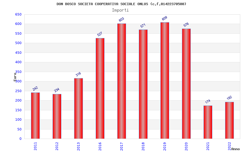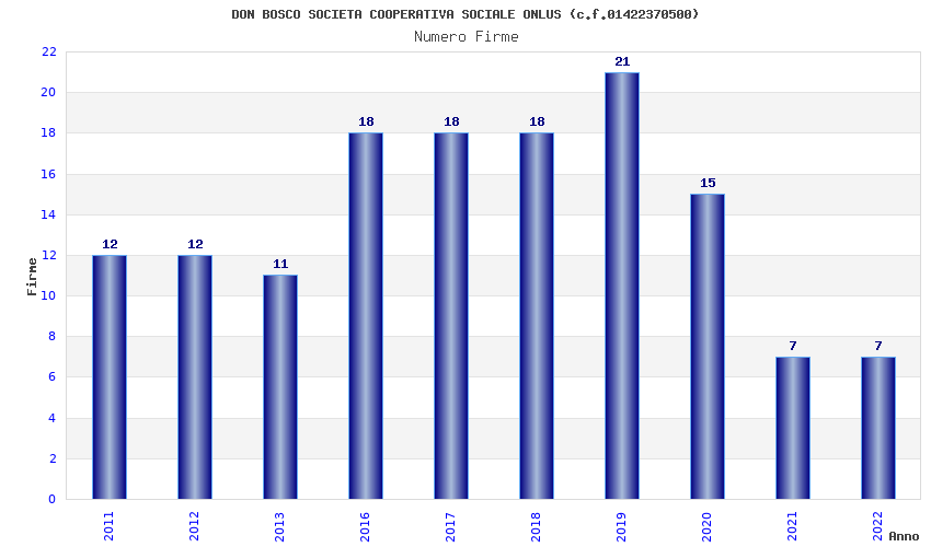 | Anno | Firme | Importi | Media | Naz. | Reg. | Prov. | Comu. |