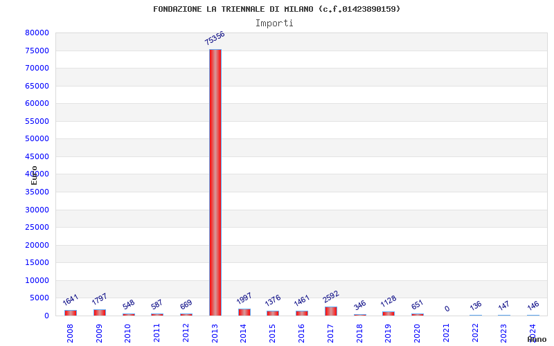 | 2013 | 8 | 75.356,45 (*) | 9.419,56 | 368 | 94 | 74 | 68 |