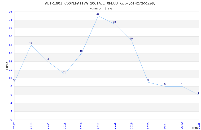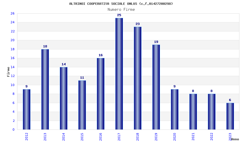 | Anno | Firme | Importi | Media | Naz. | Reg. | Prov. | Comu. |