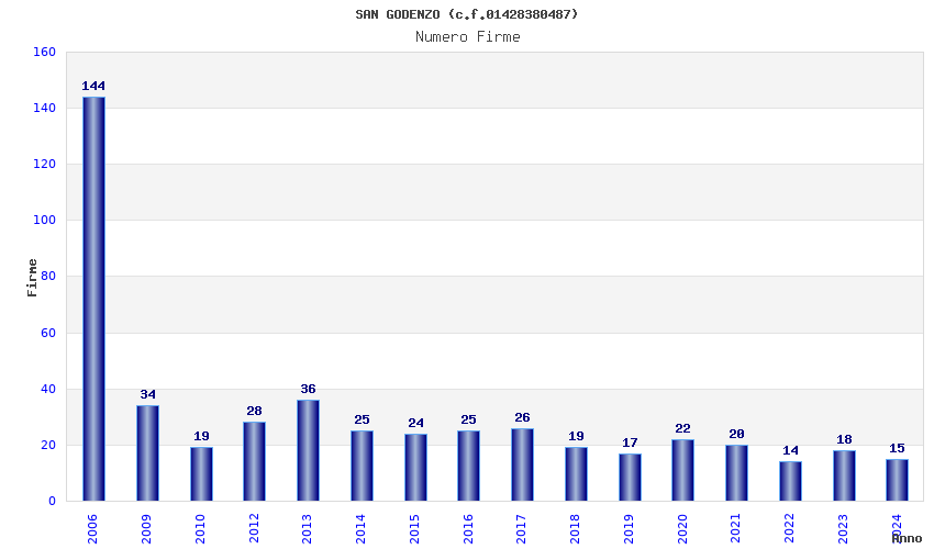 | Anno | Firme | Importi | Media | Naz. | Reg. | Prov. | Comu. |