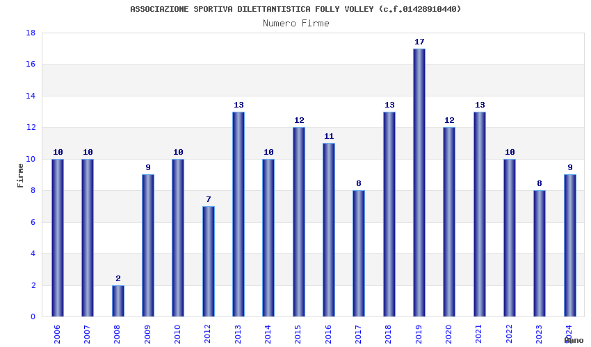| 2019 | 17 | 485,61 | 28,57 | 46.261 | 1.232 | 101 | 4 |