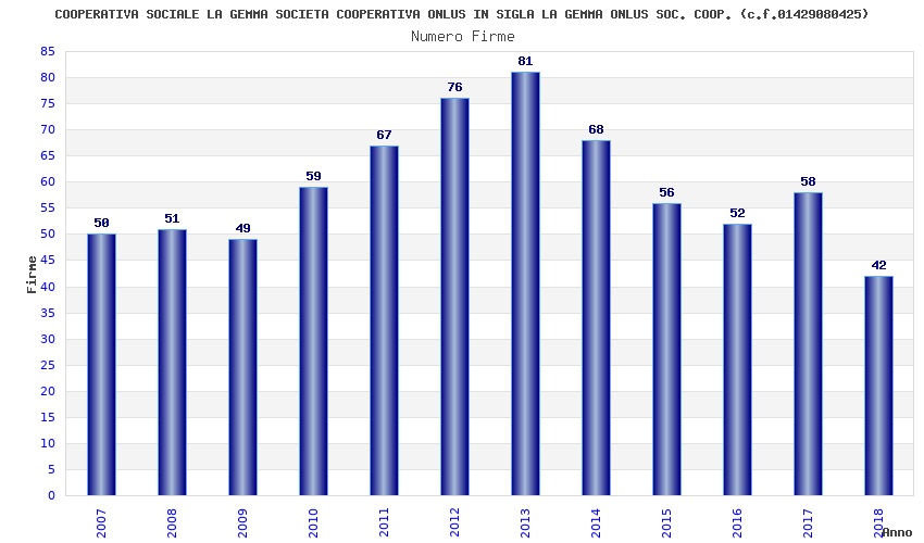 Anno Firme Importi Media Naz. Reg. Prov. Comu.