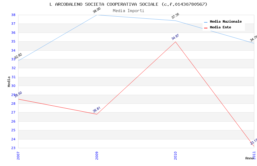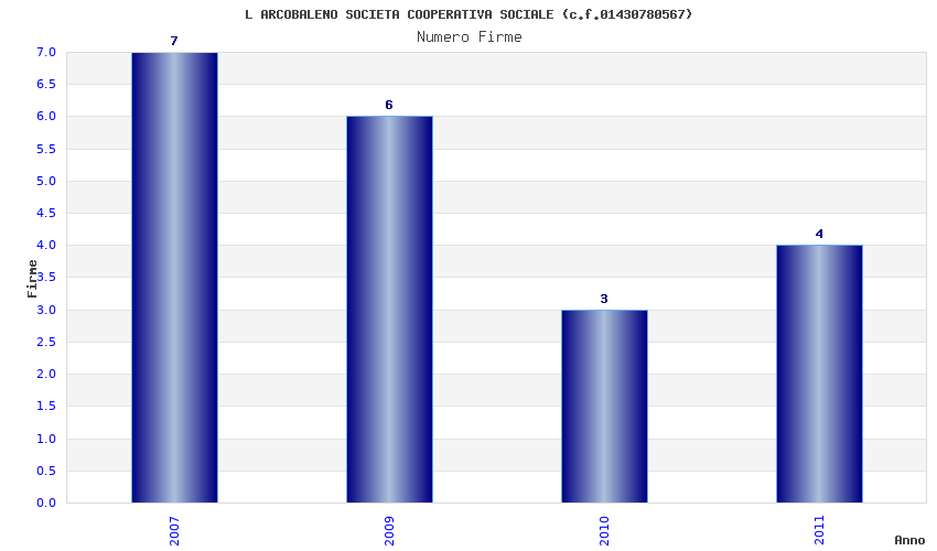 | Anno | Firme | Importi | Media | Naz. | Reg. | Prov. | Comu. |