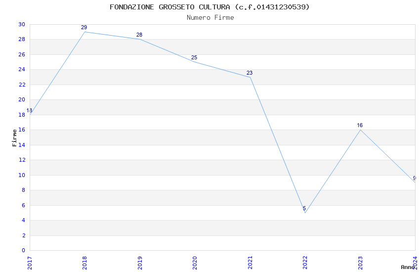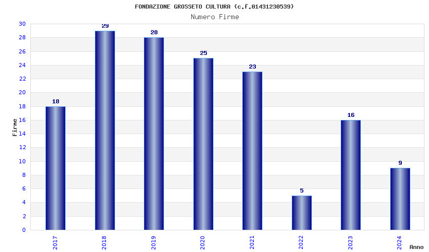 | Anno | Firme | Importi | Media | Naz. | Reg. | Prov. | Comu. |