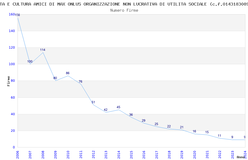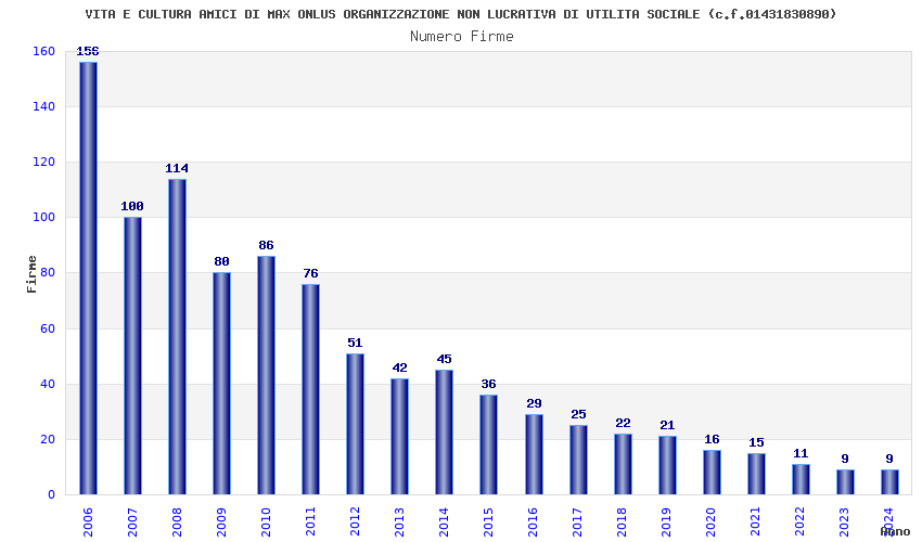 | Anno | Firme | Importi | Media | Naz. | Reg. | Prov. | Comu. |