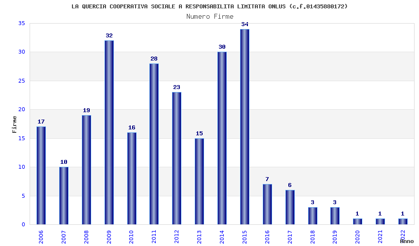| Anno | Firme | Importi | Media | Naz. | Reg. | Prov. | Comu. |