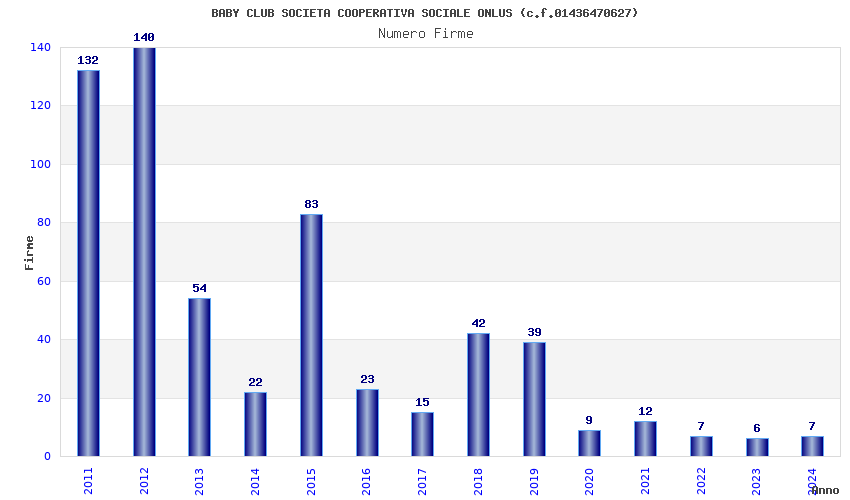 | Anno | Firme | Importi | Media | Naz. | Reg. | Prov. | Comu. |