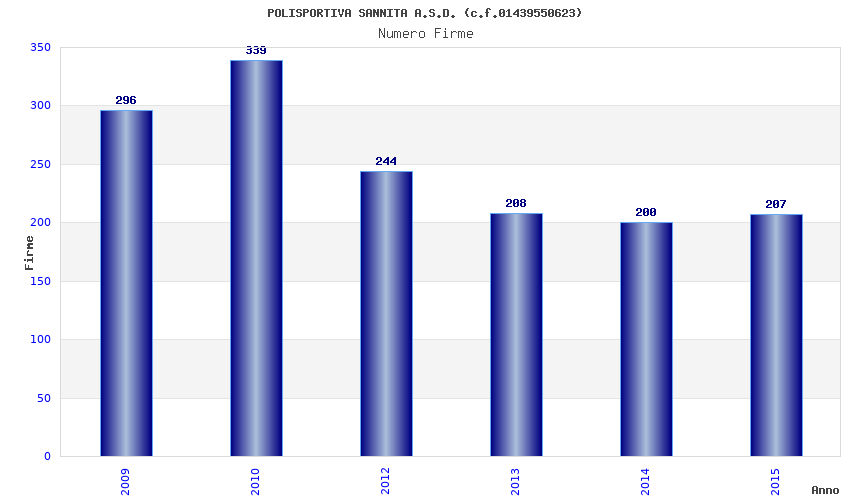 | Anno | Firme | Importi | Media | Naz. | Reg. | Prov. | Comu. |