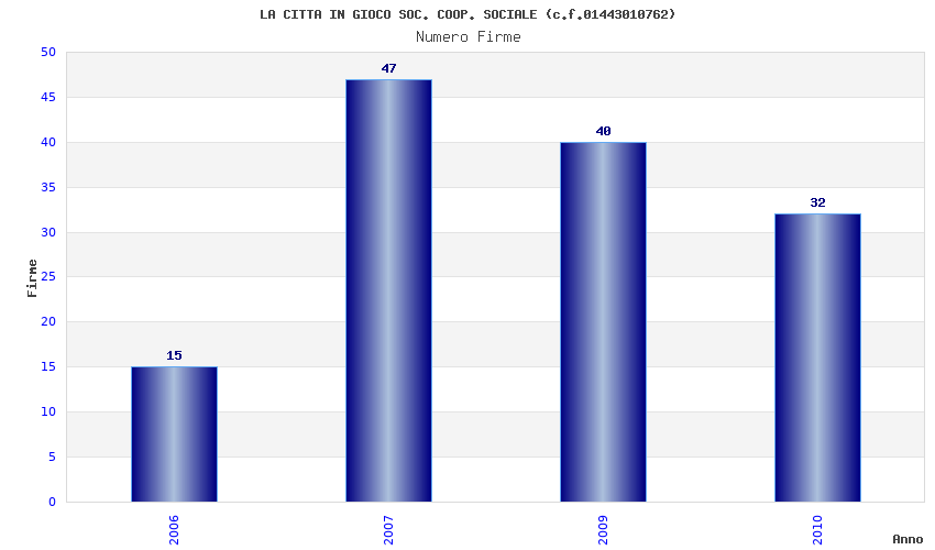 | Anno | Firme | Importi | Media | Naz. | Reg. | Prov. | Comu. |