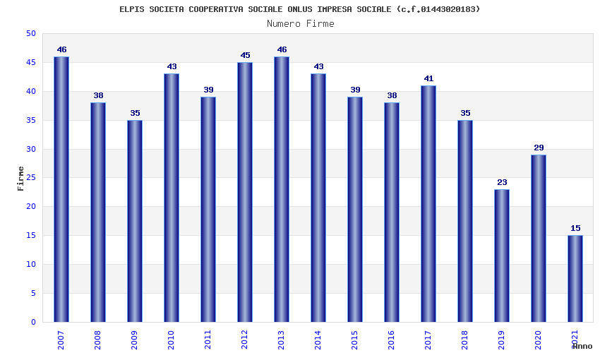 | Anno | Firme | Importi | Media | Naz. | Reg. | Prov. | Comu. |