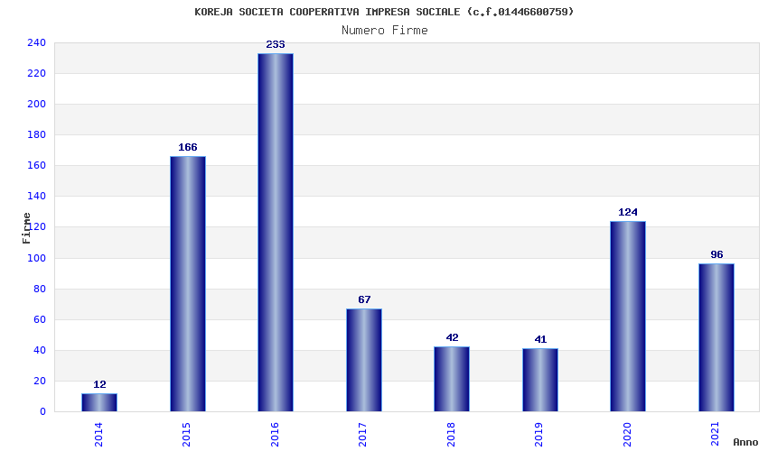 | Anno | Firme | Importi | Media | Naz. | Reg. | Prov. | Comu. |