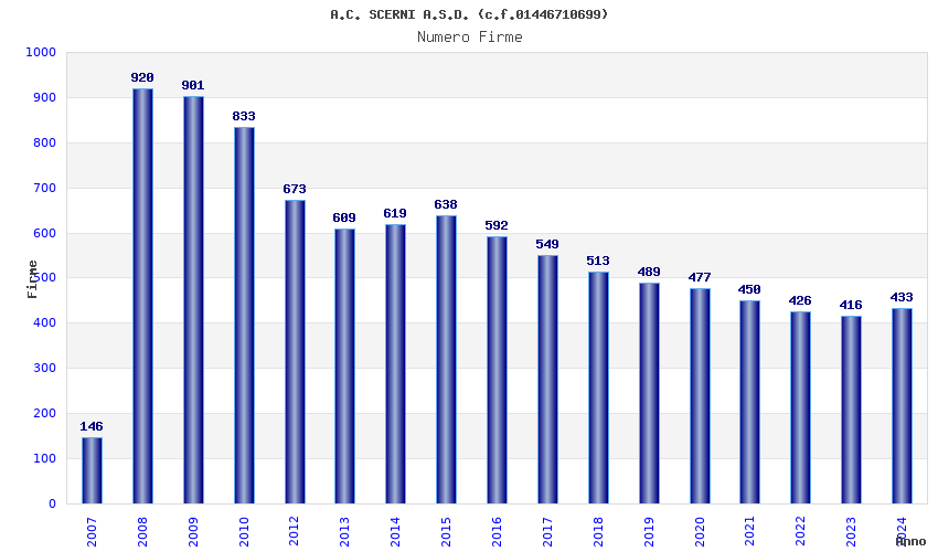 | 2008 | 920 | 16.454,53 | 17,89 | 2.585 | 33 | 11 | 1 |