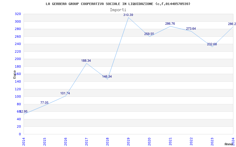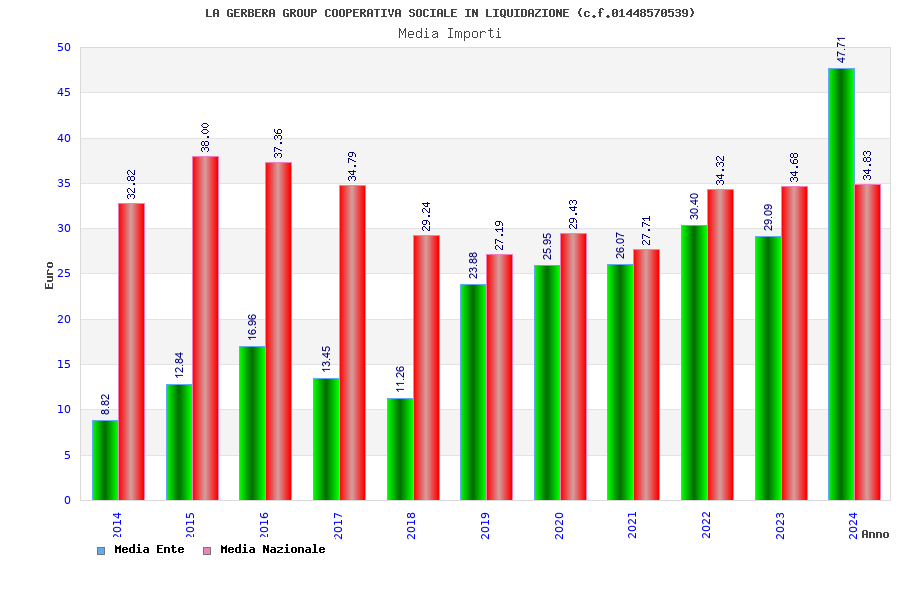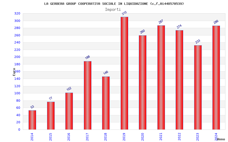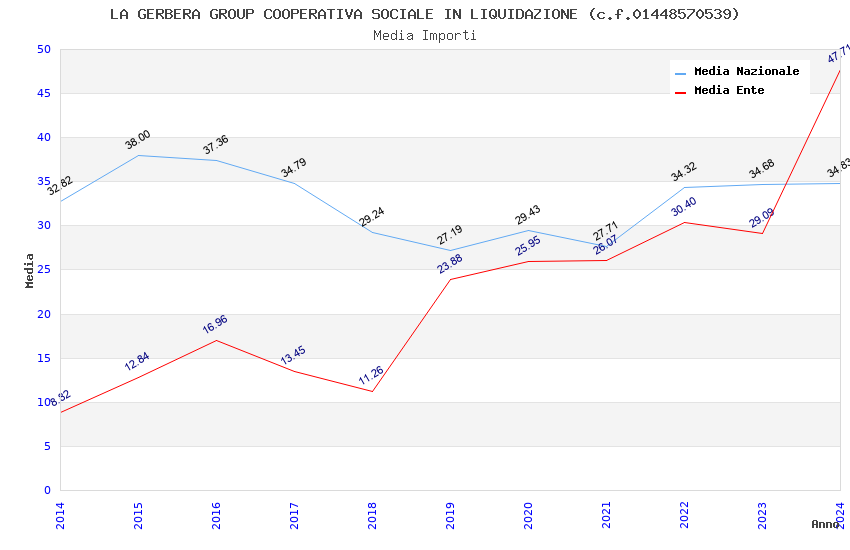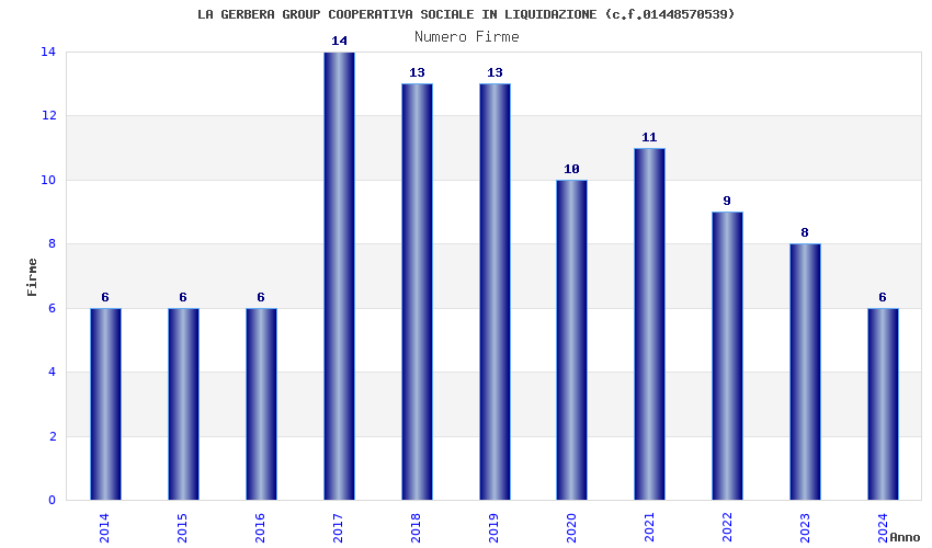 | Anno | Firme | Importi | Media | Naz. | Reg. | Prov. | Comu. |