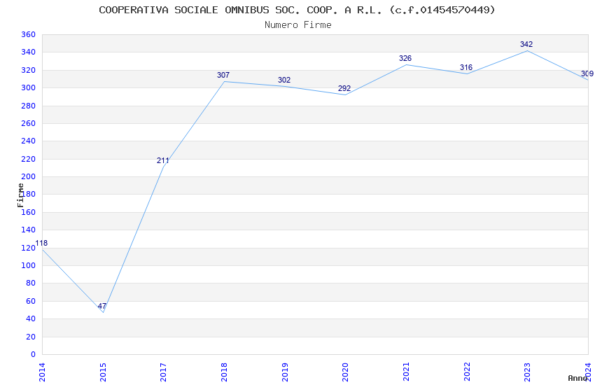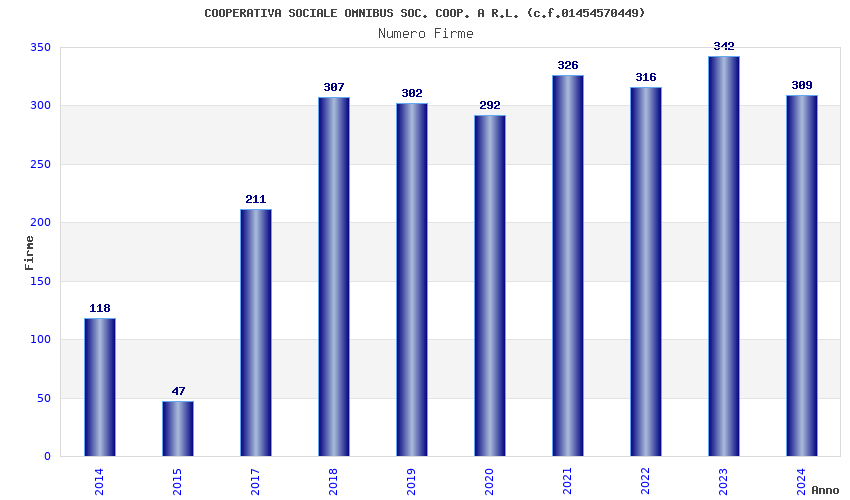 | Anno | Firme | Importi | Media | Naz. | Reg. | Prov. | Comu. |
