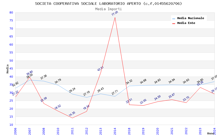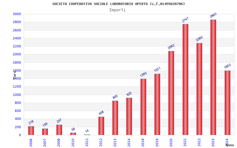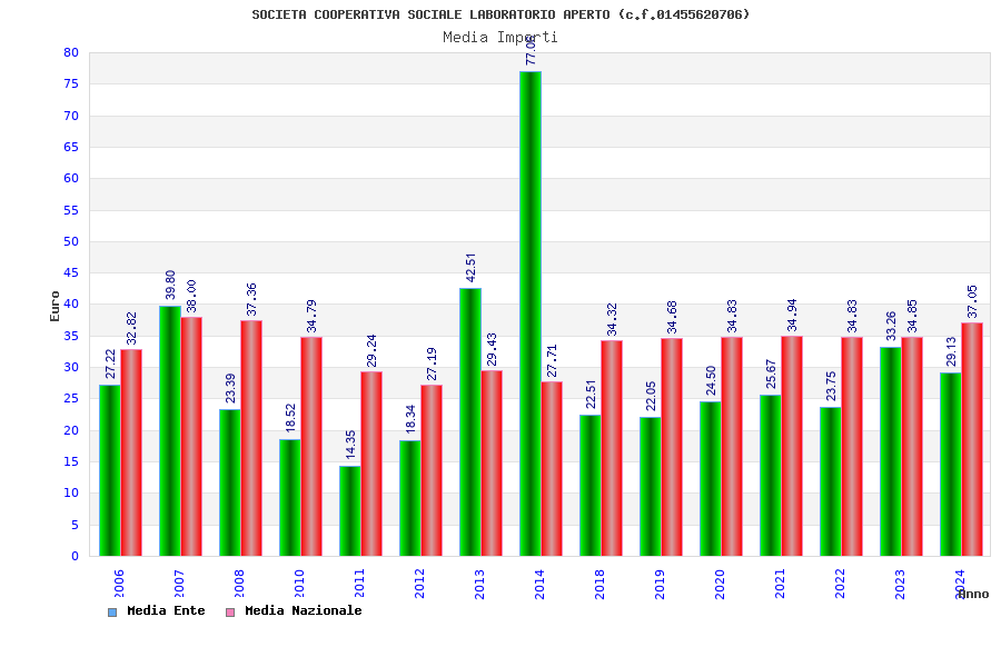 | Anno | Firme | Importi | Media | Naz. | Reg. | Prov. | Comu. |