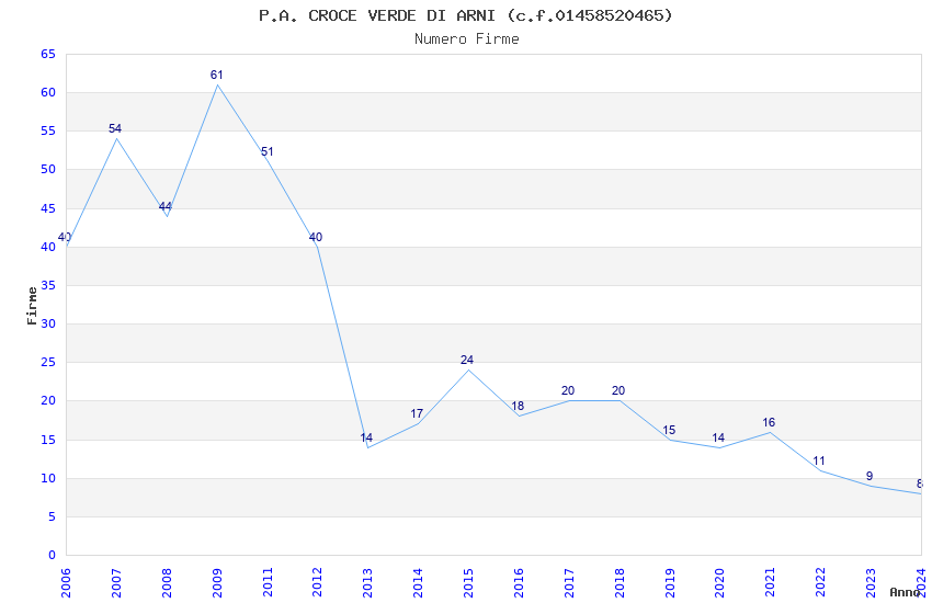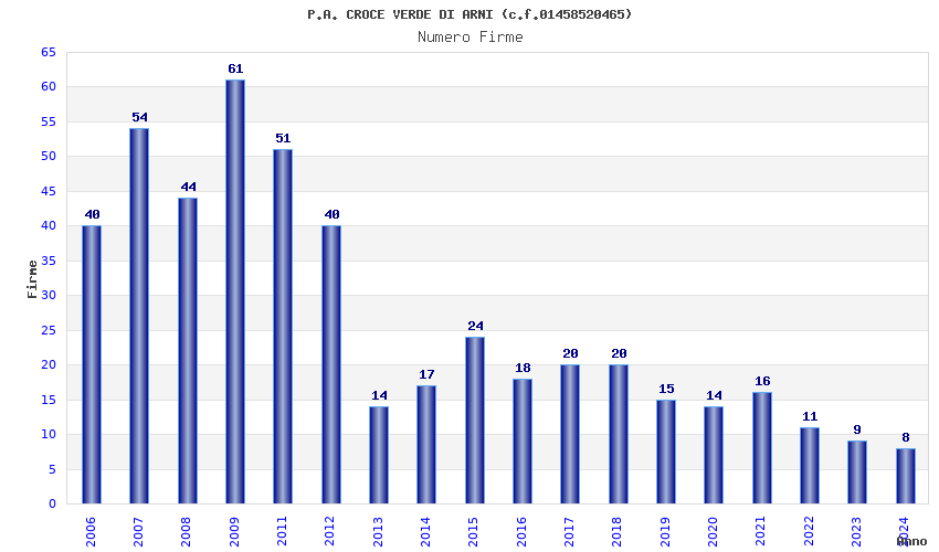 | Anno | Firme | Importi | Media | Naz. | Reg. | Prov. | Comu. |