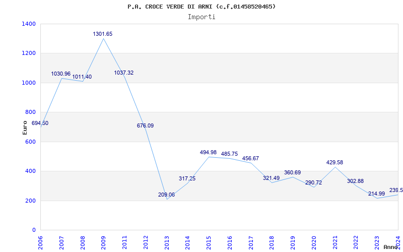 | 2013 | 14 | 209,06 | 14,93 | 41.560 | 2.701 | 265 | 6 |