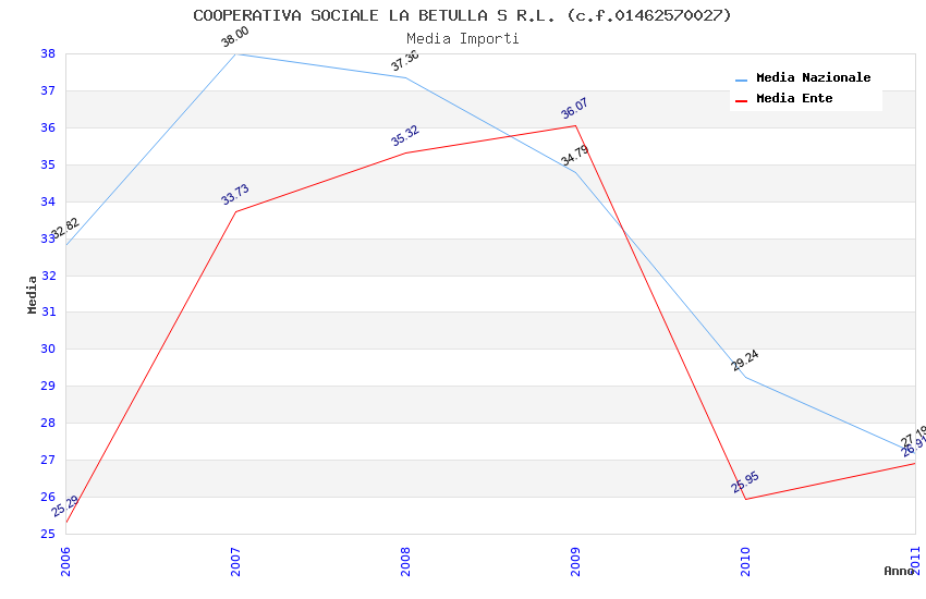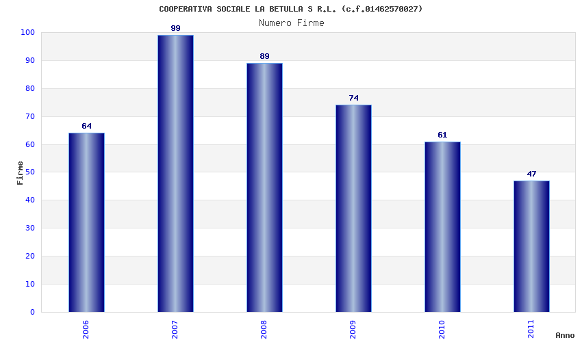 | Anno | Firme | Importi | Media | Naz. | Reg. | Prov. | Comu. |