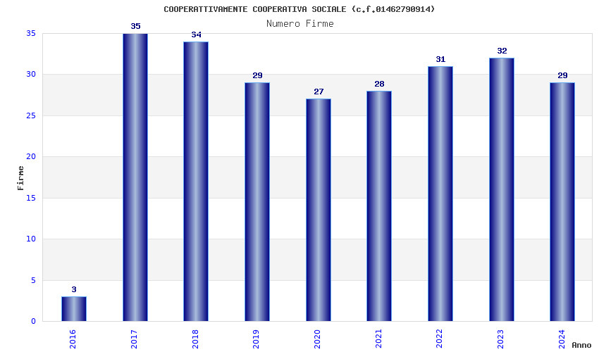 | Anno | Firme | Importi | Media | Naz. | Reg. | Prov. | Comu. |