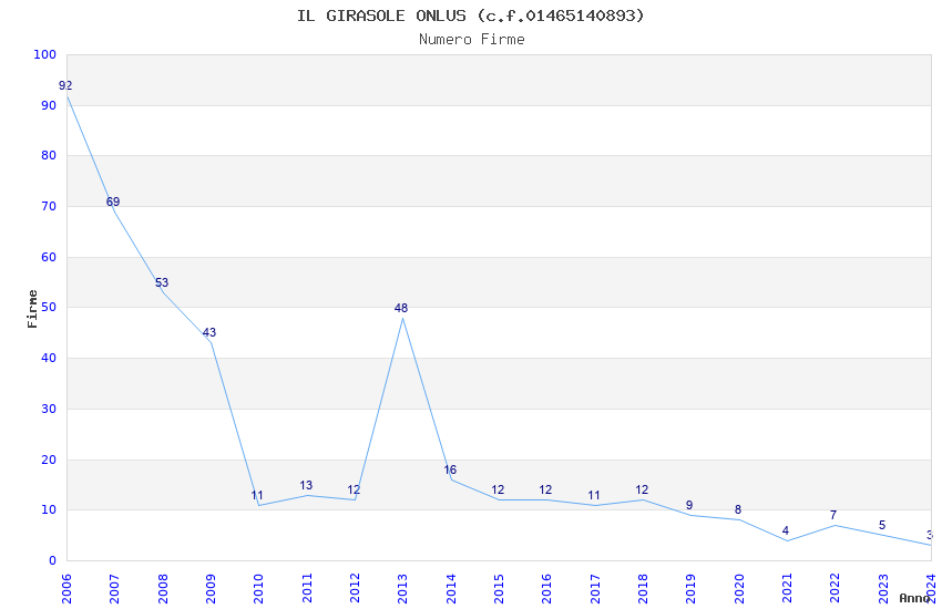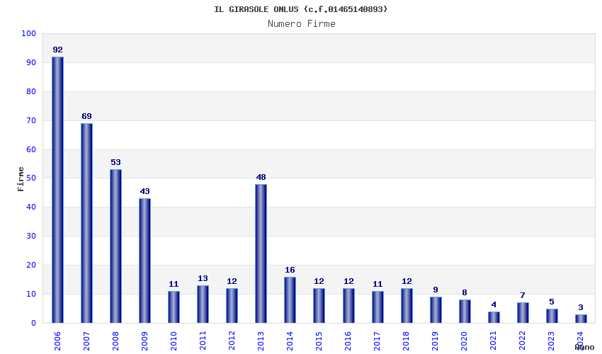 | Anno | Firme | Importi | Media | Naz. | Reg. | Prov. | Comu. |