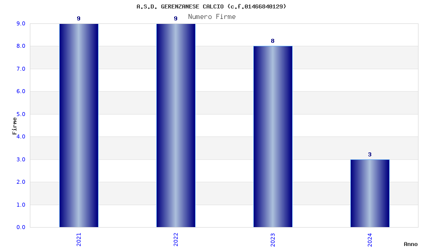 | Anno | Firme | Importi | Media | Naz. | Reg. | Prov. | Comu. |