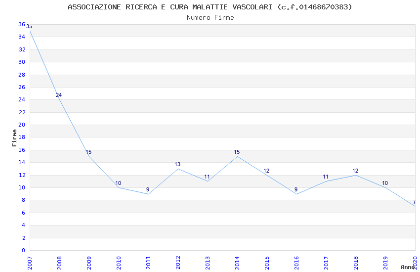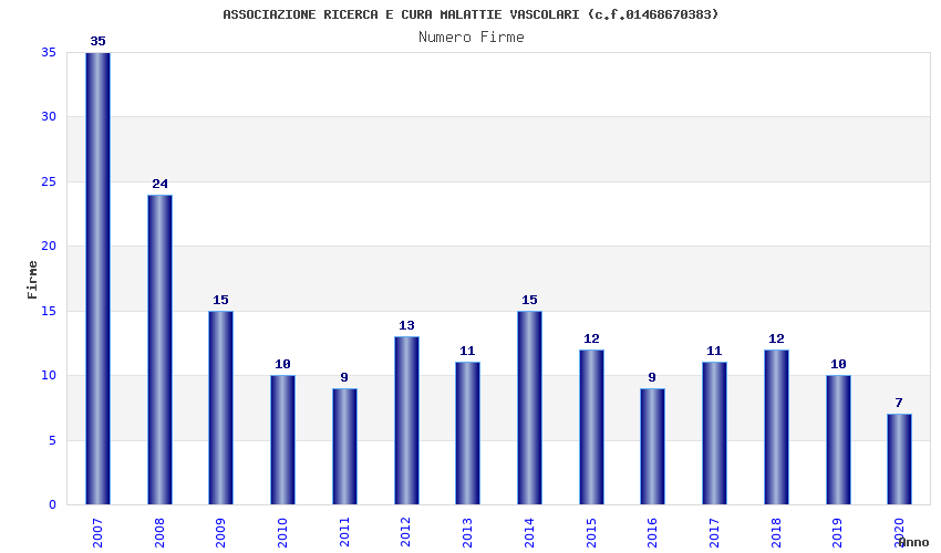 | Anno | Firme | Importi | Media | Naz. | Reg. | Prov. | Comu. |