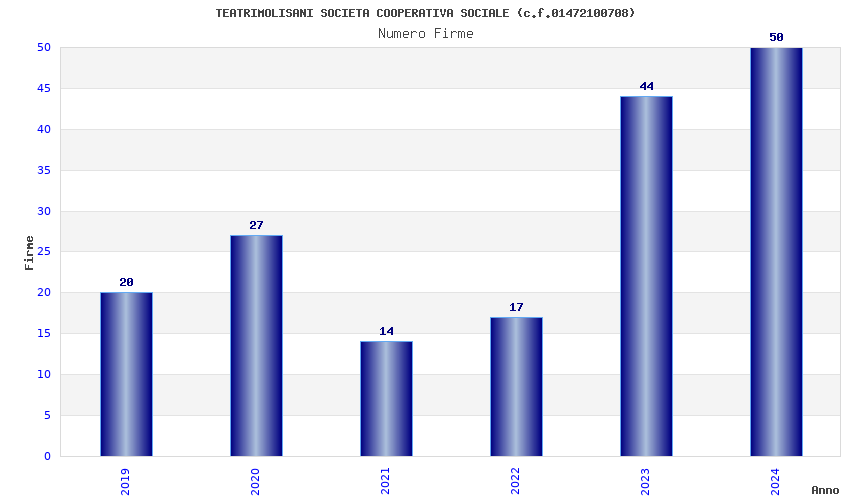 | Anno | Firme | Importi | Media | Naz. | Reg. | Prov. | Comu. |