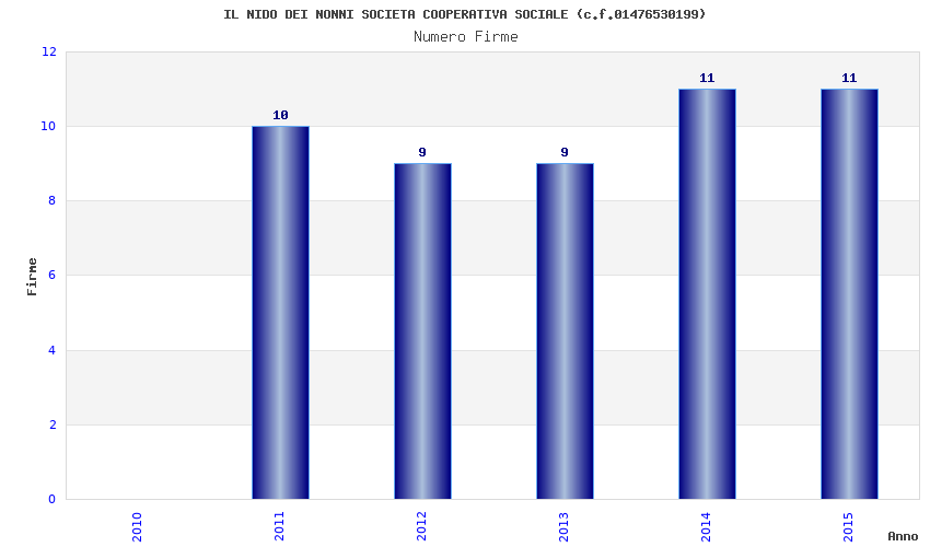 | Anno | Firme | Importi | Media | Naz. | Reg. | Prov. | Comu. |