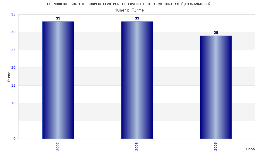 | Anno | Firme | Importi | Media | Naz. | Reg. | Prov. | Comu. |