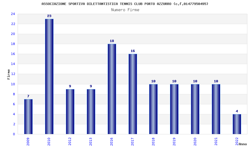 | Anno | Firme | Importi | Media | Naz. | Reg. | Prov. | Comu. |