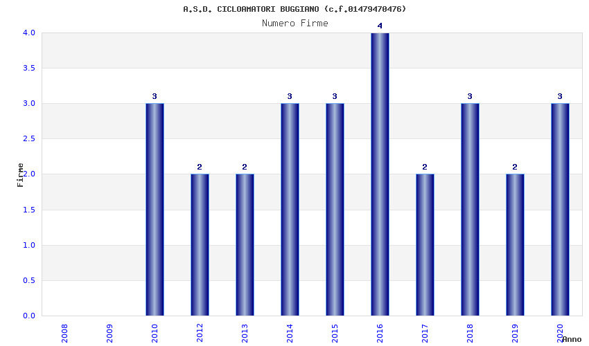 | Anno | Firme | Importi | Media | Naz. | Reg. | Prov. | Comu. |