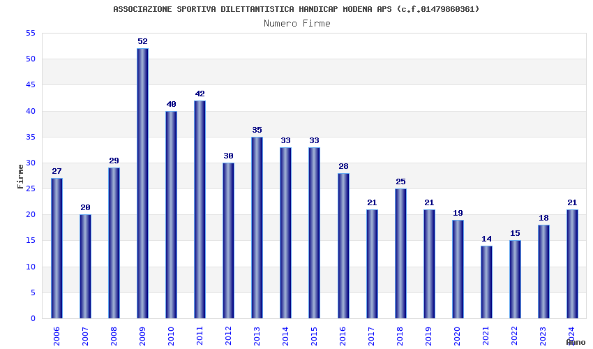 | Anno | Firme | Importi | Media | Naz. | Reg. | Prov. | Comu. |