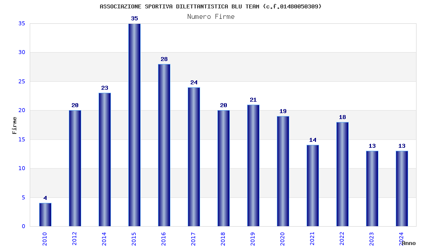 | Anno | Firme | Importi | Media | Naz. | Reg. | Prov. | Comu. |