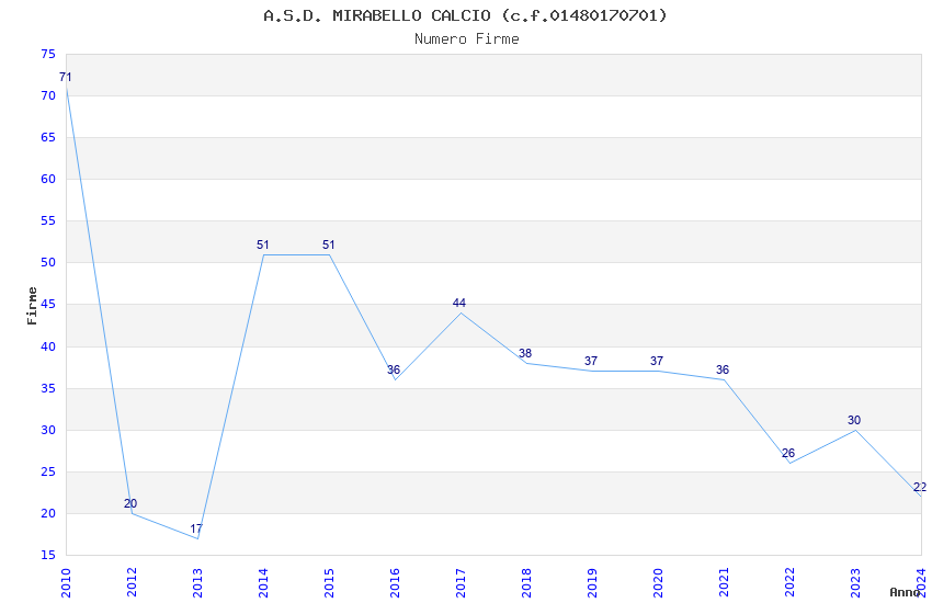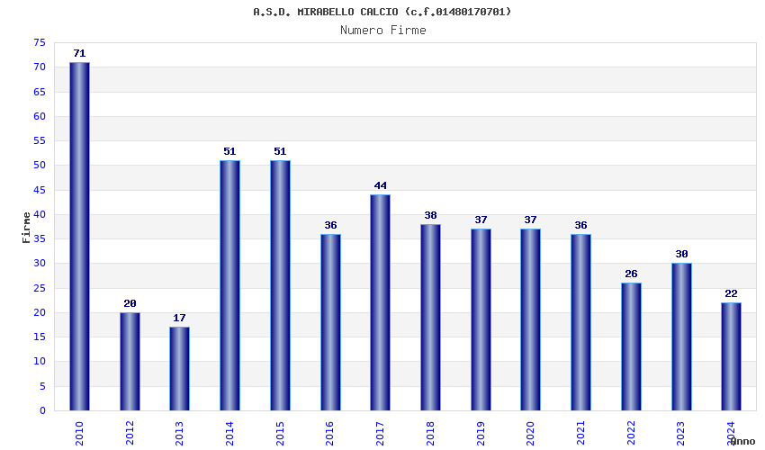 | 2010 | 71 | 2.098,61 | 29,56 | 16.073 | 62 | 43 | 1 |