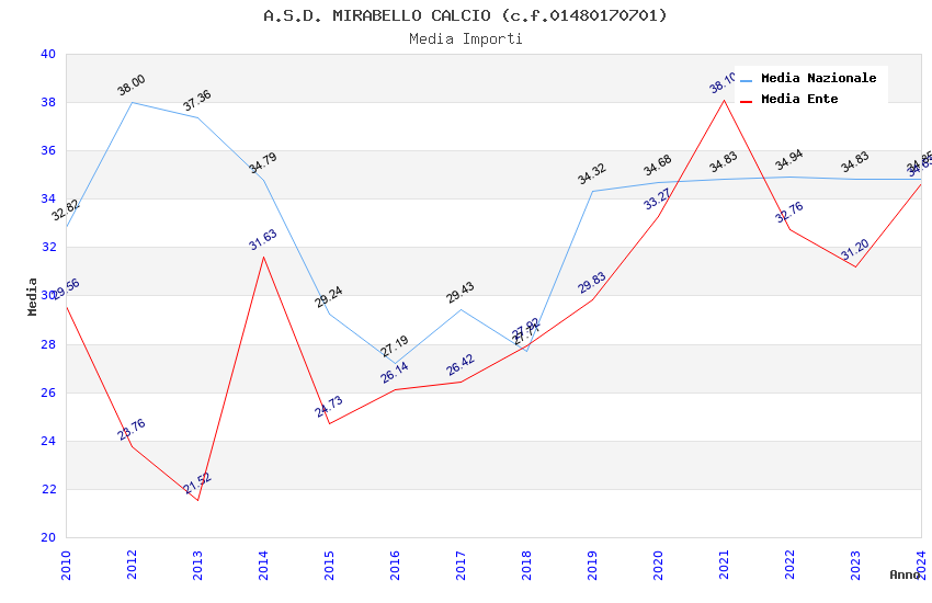 | Anno | Firme | Importi | Media | Naz. | Reg. | Prov. | Comu. |