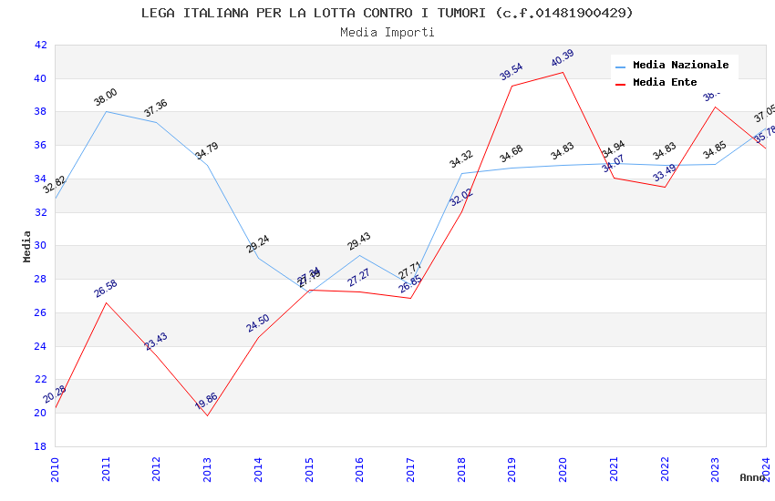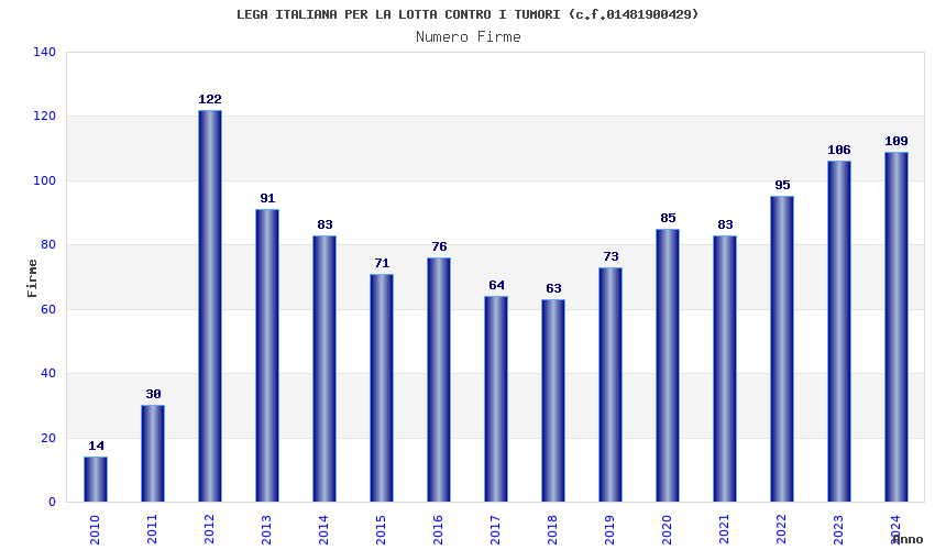 | Anno | Firme | Importi | Media | Naz. | Reg. | Prov. | Comu. |
