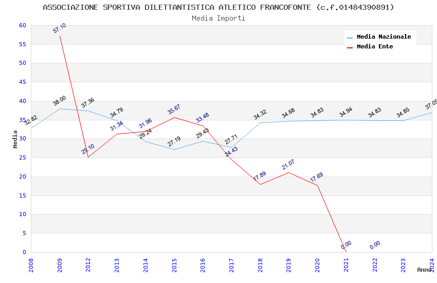 | Anno | Firme | Importi | Media | Naz. | Reg. | Prov. | Comu. |