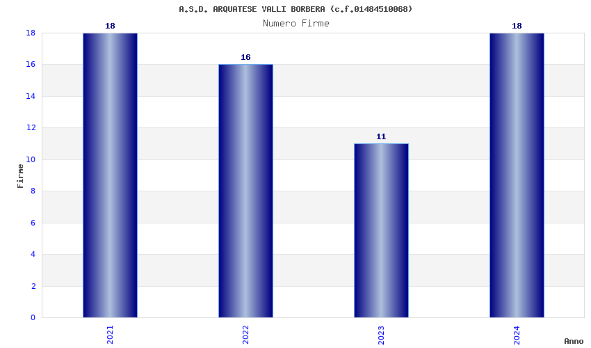 | Anno | Firme | Importi | Media | Naz. | Reg. | Prov. | Comu. |