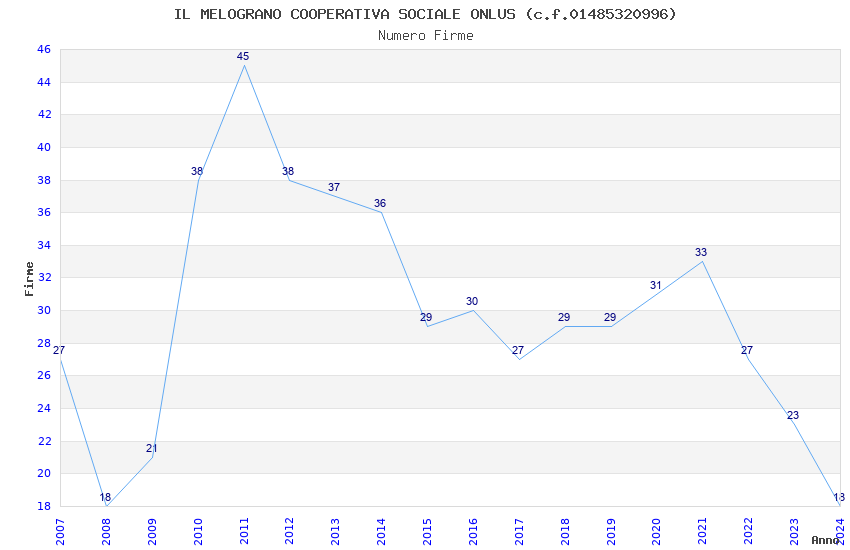 | 2011 | 45 | 802,60 | 17,84 | 22.042 | 665 | 416 | 330 |