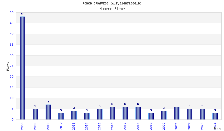| Anno | Firme | Importi | Media | Naz. | Reg. | Prov. | Comu. |
