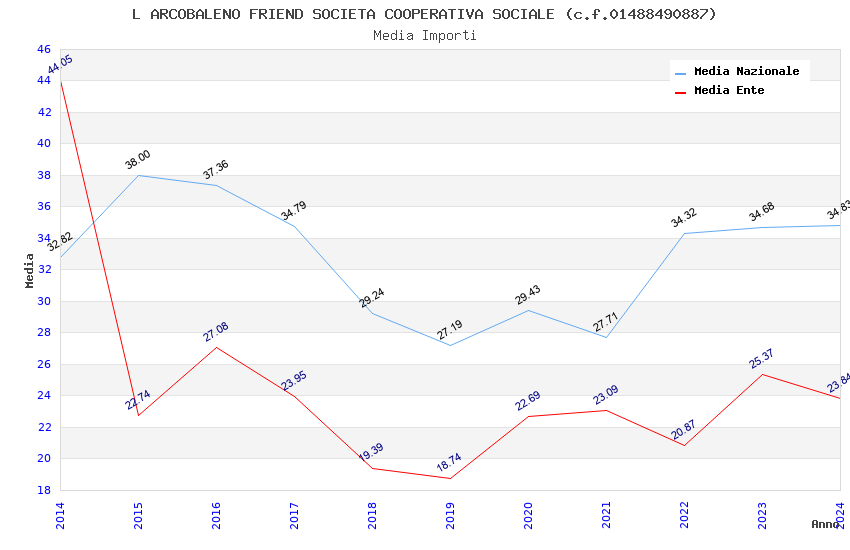 | Anno | Firme | Importi | Media | Naz. | Reg. | Prov. | Comu. |