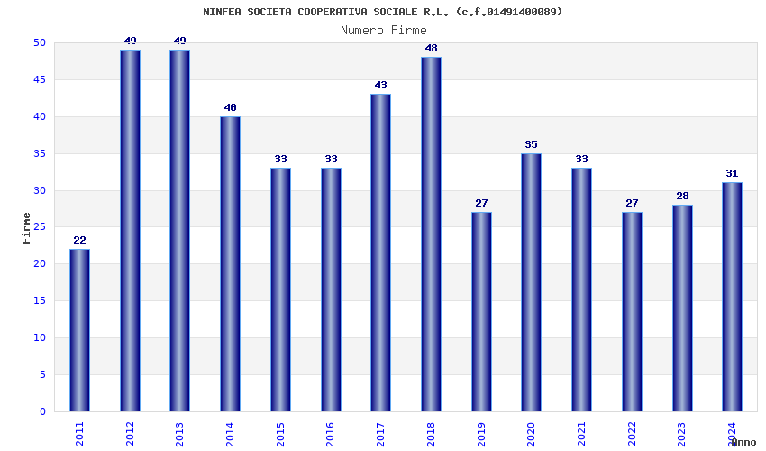 | Anno | Firme | Importi | Media | Naz. | Reg. | Prov. | Comu. |