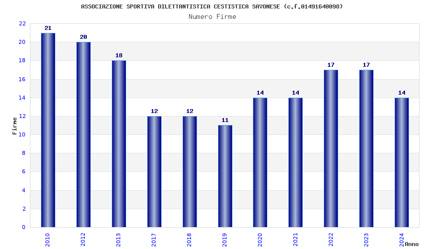 | Anno | Firme | Importi | Media | Naz. | Reg. | Prov. | Comu. |