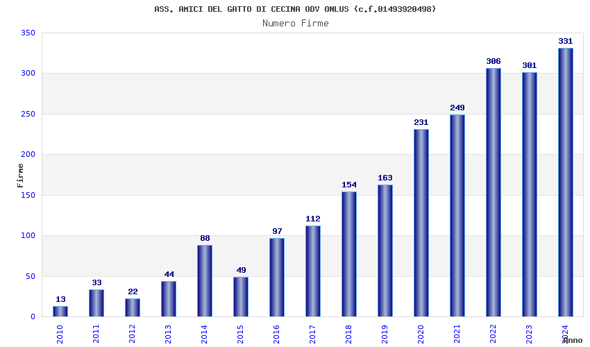 Anno Firme Importi Media Naz. Reg. Prov. Comu.