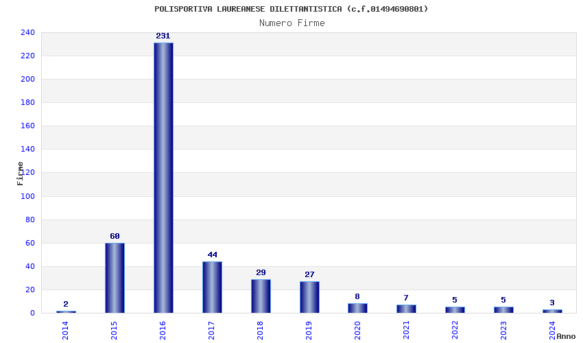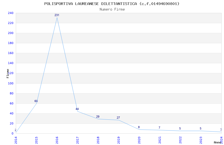 | 2016 | 231 | 5.196,60 | 22,50 | 10.553 | 218 | 70 | 3 |