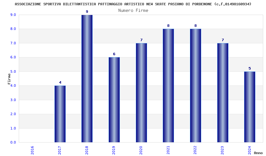 | Anno | Firme | Importi | Media | Naz. | Reg. | Prov. | Comu. |