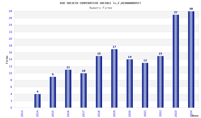 | Anno | Firme | Importi | Media | Naz. | Reg. | Prov. | Comu. |