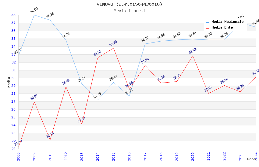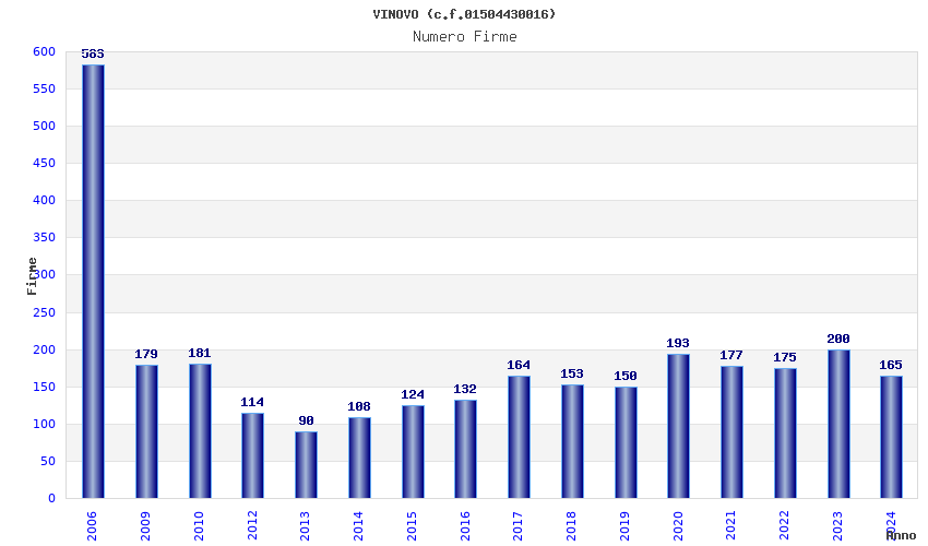 | Anno | Firme | Importi | Media | Naz. | Reg. | Prov. | Comu. |