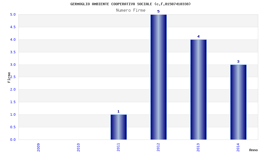 | Anno | Firme | Importi | Media | Naz. | Reg. | Prov. | Comu. |