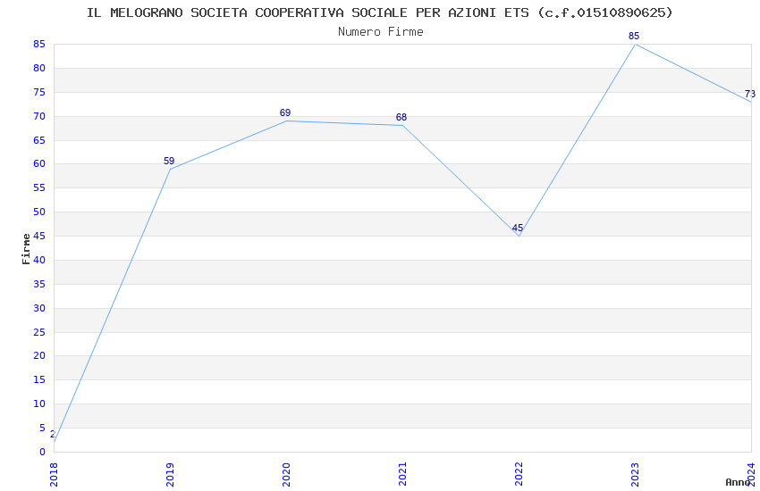 | 2023 | 85 | 5.498,00 | 64,68 | 9.809 | 652 | 33 | 12 |